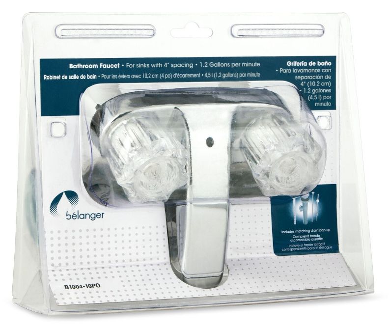 B1 Polished Chrome 2-Handle Bathroom Sink Faucet With Drain, 4 in. Centerset