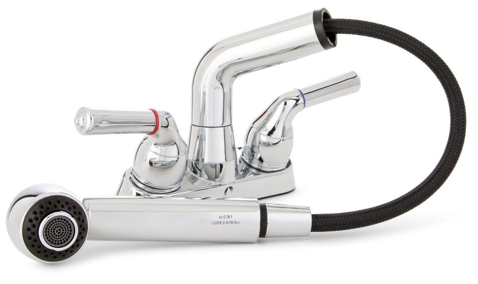 Chrome Dual Handle Non Metallic Laundry Faucet With Pull Out Spray