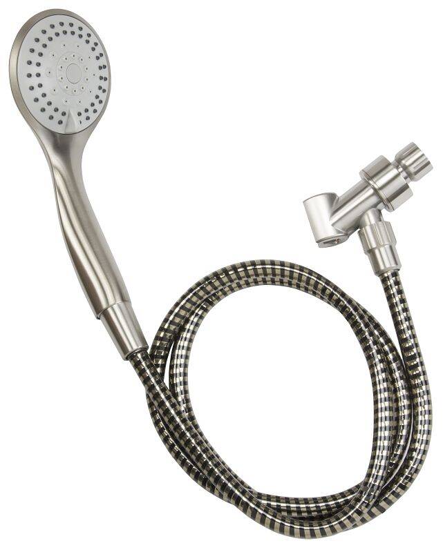 Plumb Pak Handheld Shower, 1.8 gpm, Number of Spray Functions: 5, Hose Length: 60 in, Head Diameter: 3.8 in, Brushed Nickel, Includes: (1) Flexible Hose, (1) Diverter Bracket, (1) Handheld Showerhead