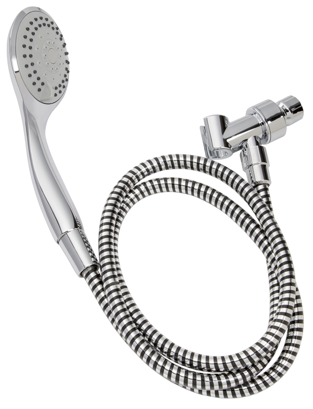 Plumb Pak Handheld Shower, 1.8 gpm, Number of Spray Functions: 5, Hose Length: 60 in, Head Diameter: 3.8 in, Polished Chrome, Includes: (1) Flexible Hose, (1) Diverter Bracket, (1) Handheld Showerhead