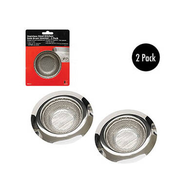 This two pack of strainers features 2 mm holes drilled into the strainer to prevent clogging in kitchen sinks and allow food particles to be collected while allowing water to easily flow through. These strainers offer a long lasting look that completely covers existing drains enhancing the look of kitchen sinks.