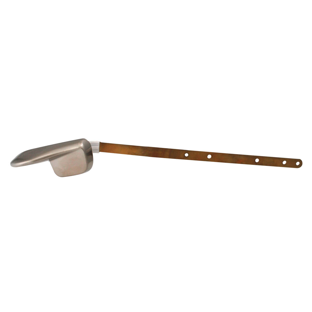 Replacement tank lever with bendable brass arm and brushed nickel handle. Fits front, side or angle mount toilet tanks. Arm length adjustable from 5 to 8 in.