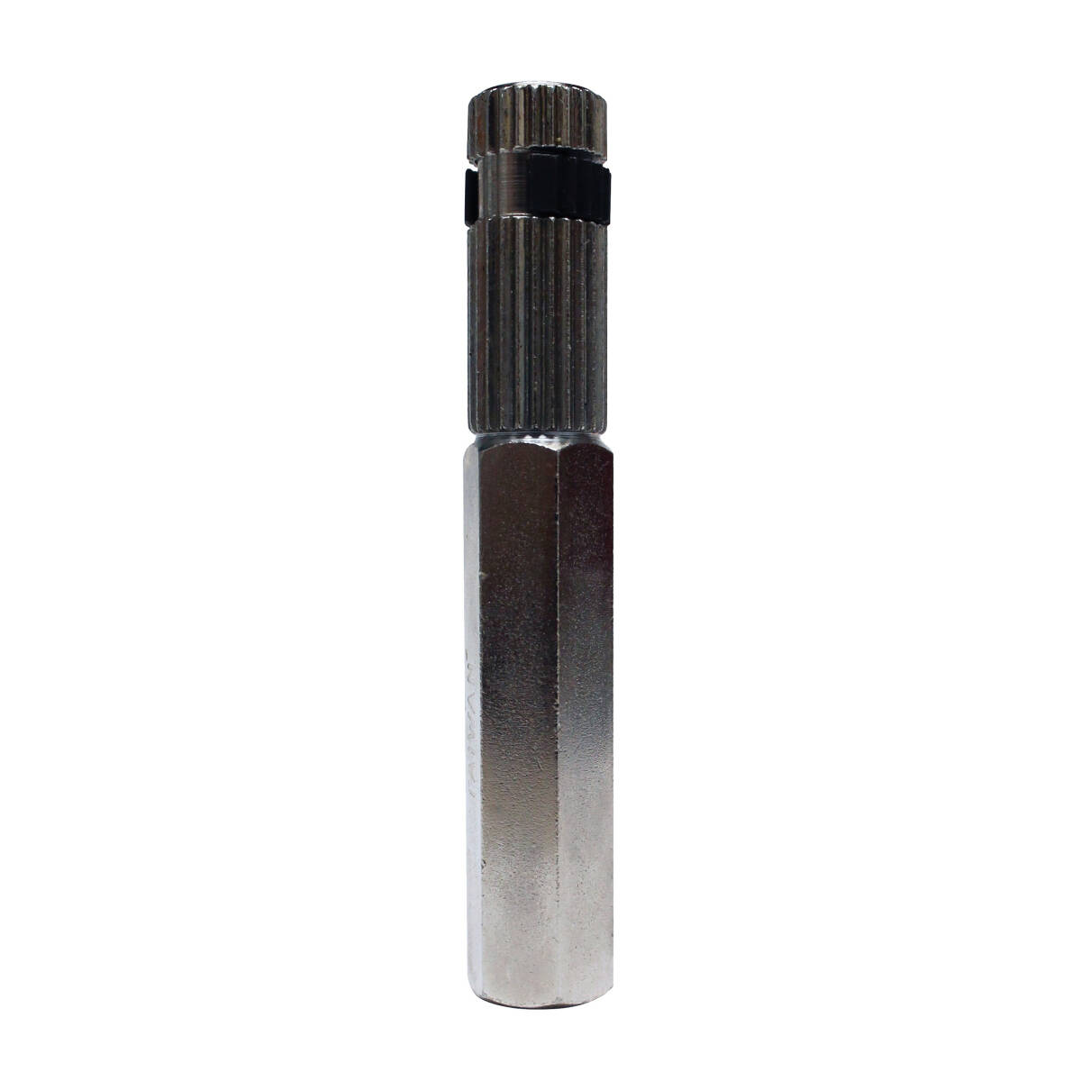 Nipple extractor for pipe nipples. Cam-style design fits into pipe and extends as it is turned, gripping the pipe from the inside to install or remove. Hex side allows tools a firm grip when using with wrenches.
