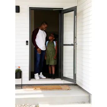 Larson® has gone Platinum. The Platinum Retractable Screen model is the ultimate Screen Away® storm door with added safety lock, better operation, a modern look and an installation that takes only a few minutes, not hours. Handcrafted to enhance your entrance's architecture, the sleek, modern design is both innovative and attractive. The vault-like, multi-point locking system secures the door in three places, providing peace of mind. This pre-assembled door with maintenance-free aluminum frame and triple weatherstrip seals out harsh weather. Invite fresh air into your home with the touch of a finger, anytime nature allows.