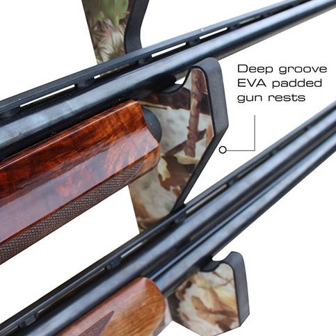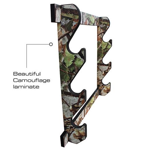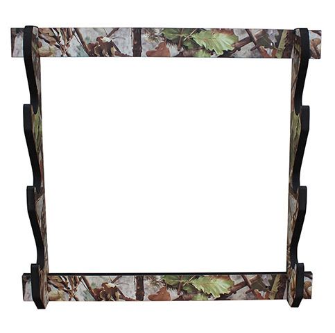 At Rush Creek Creations we are passionate about the outdoors and are all avid sportsman. This indoor 3 Rifle/Shotgun Wall Storage Display Rack is a great way to showcase and display your single barrel long guns or over/under shotguns (guns not included). The Camouflage laminate adds natural beauty of this display rack and will enhance any home, cabin or lodge. The side panels have deeper grooves so all guns will be securely displayed upright in a horizontal position. An added feature is the extra padding that has been placed when the gun rests to protect the finish of your long guns. The 4-piece construction makes for convenient easy assembly and mounting holes are 16″ on center. We suggest not placing double barrel shotguns due to the width of the side by side barrels.
