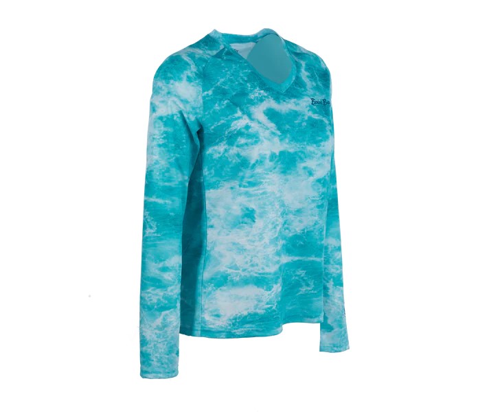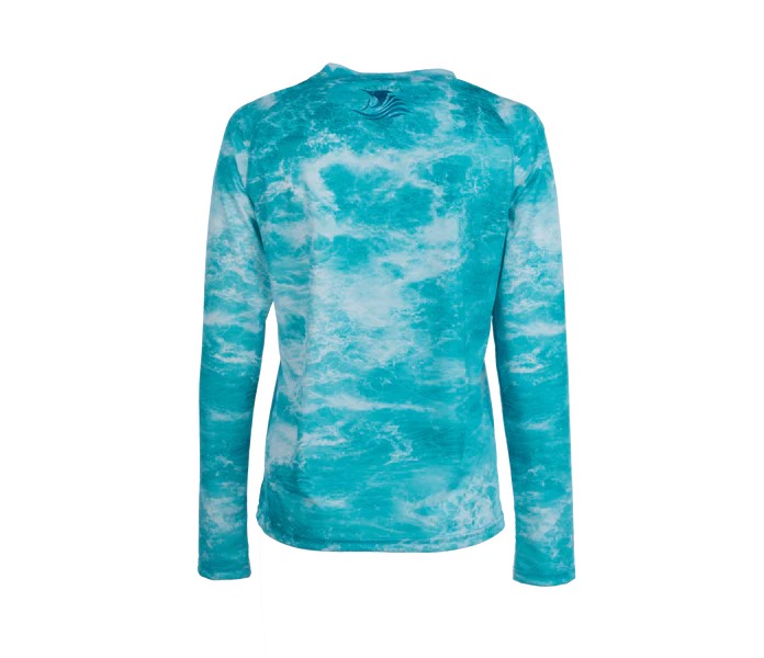 Shirt Undertow Camo Long Sleeve Allover Sublimation Womens, Turquoise, Size 2Extra-Large