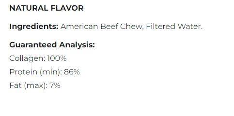| Guaranteed Analysis | Guaranteed Analysis: Collagen: 100%; Protein (min): 86%; Fat (max): 7% |