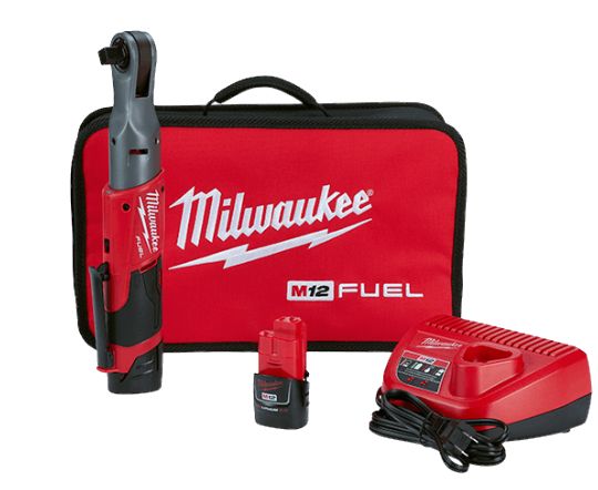 Our MILWAUKEE M12 FUEL 1/2 in Ratchet is the first cordless tool that provides both the torque and compact size to replace pneumatic ratchets in the industry. This cordless ratchet kit includes 2 REDLITHIUM batteries, an M12 battery charger and carrying case. This Milwaukee ratchet delivers up to 60 ft -lbs of max torque and 175rpm's making it the ideal fastening solution for automotive mechanics, repair technicians and maintenance workers who demand maximum performance and convenient portability. The M12 battery powered ratchet has a low profile head and cordless design which allows you more access in tight spaces than competitive units. With the industry leading FUEL technology, a reinforced mechanism and investment cast steel yoke housing, this rechargeable ratchet can withstand daily jobsite wear and tear for years of reliable use. Milwaukees cordless ratchet has eliminated the constant maintenance of pneumatic ratchets and the nuisance of an air hose in the shop. The M12 FUEL Ratchet delivers the maximum portability and productivity for the professional user.