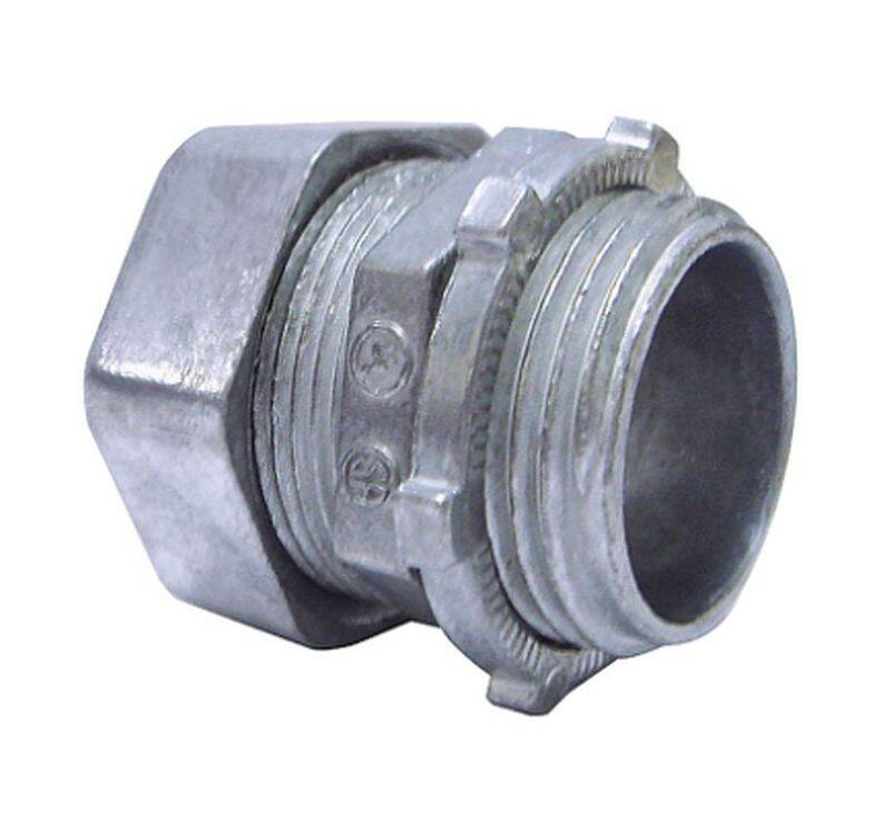 Compression type connectors are used to secure and terminate steel EMT conduit to a knockout in a metal box or enclosure. For dry location applications.