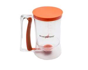 The Blackstone Breakfast Kit is the most convenient way to do breakfast on the griddle. This kit saves time, dishes and clean up and helps makes you look like a pro at making breakfast! The Blackstone batter dispenser holds up to 4 cups of batter and is easy to use for perfect pancakes every time. Can be used for making pancakes, cupcakes, muffins, etc. The Blackstone bacon press is made of pre-seasoned cast iron which provides even heating as well as retention , eliminating hot spots. Excellent for making grilled sandwiches on the griddle as well. 4″ diameter egg rings for making eggs and pancakes. These have a wooden knob handle that fold for easy pick up and storage. Set of 2.