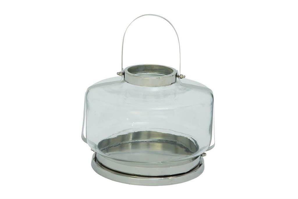 Glass Lantern — 12 in. H x 10 in. W x 10 in. D, Clear Glass/Silver Metal