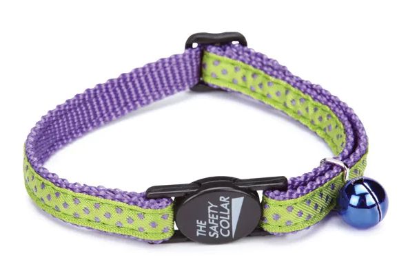 8 To 12-Inch Purple Dot Nylon Cat Collar With Jingle Bell
