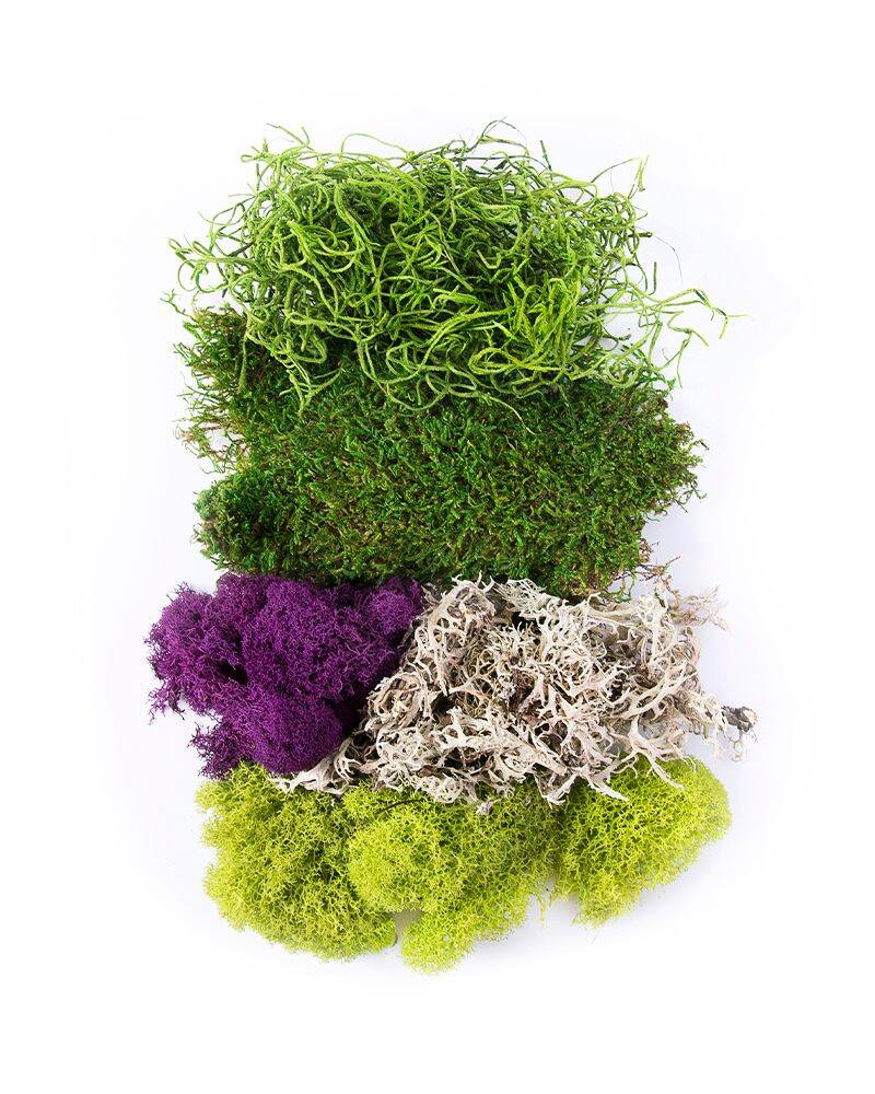 SuperMoss Best Sellers Moss Mix is a collection of our best-selling mosses so you can mix and match, experiment with new styles, and get a feel for the different types of our premium quality mosses. Our Moss Mix is like a bento box of the following mosses and lichens: Spanish Moss in Grass Green, Reindeer Moss in Chartreuse, Sheet Moss, and Lichen Parmelia with tufts of Fuchsia Reindeer Moss in the center! All included mosses and lichens are in their natural form. SuperMoss Best Sellers Moss Mix is a great product for decorative purposes and for terrariums or crafts.