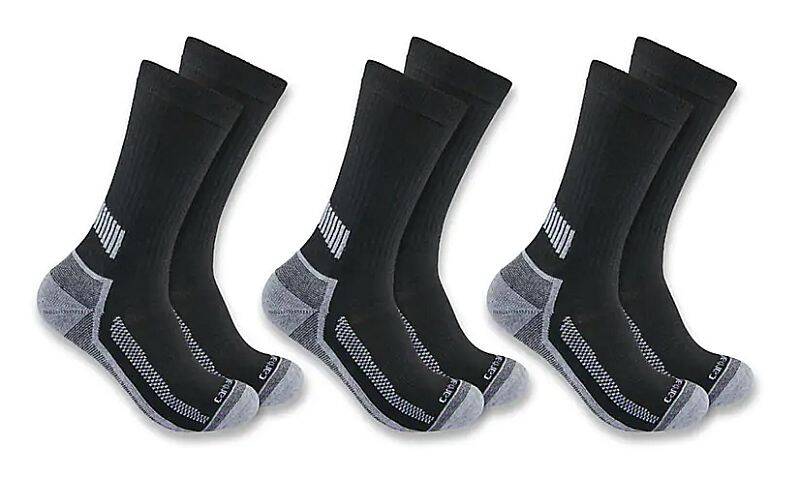 Everyday socks you can wear year round. These comfortable, men's crew socks are made of sweat-wicking yarn and have a reinforced heel and toe for durability. The reinforced arch and ankle adds support.