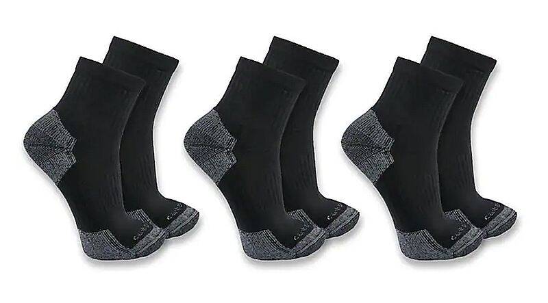 These men's quarter socks are a workday staple that offer breathable comfort on the job. They're made of a soft cotton blend with a bit of spandex for a stay-put fit. Reinforcement at the heel and toe provides extra padding in high impact areas.