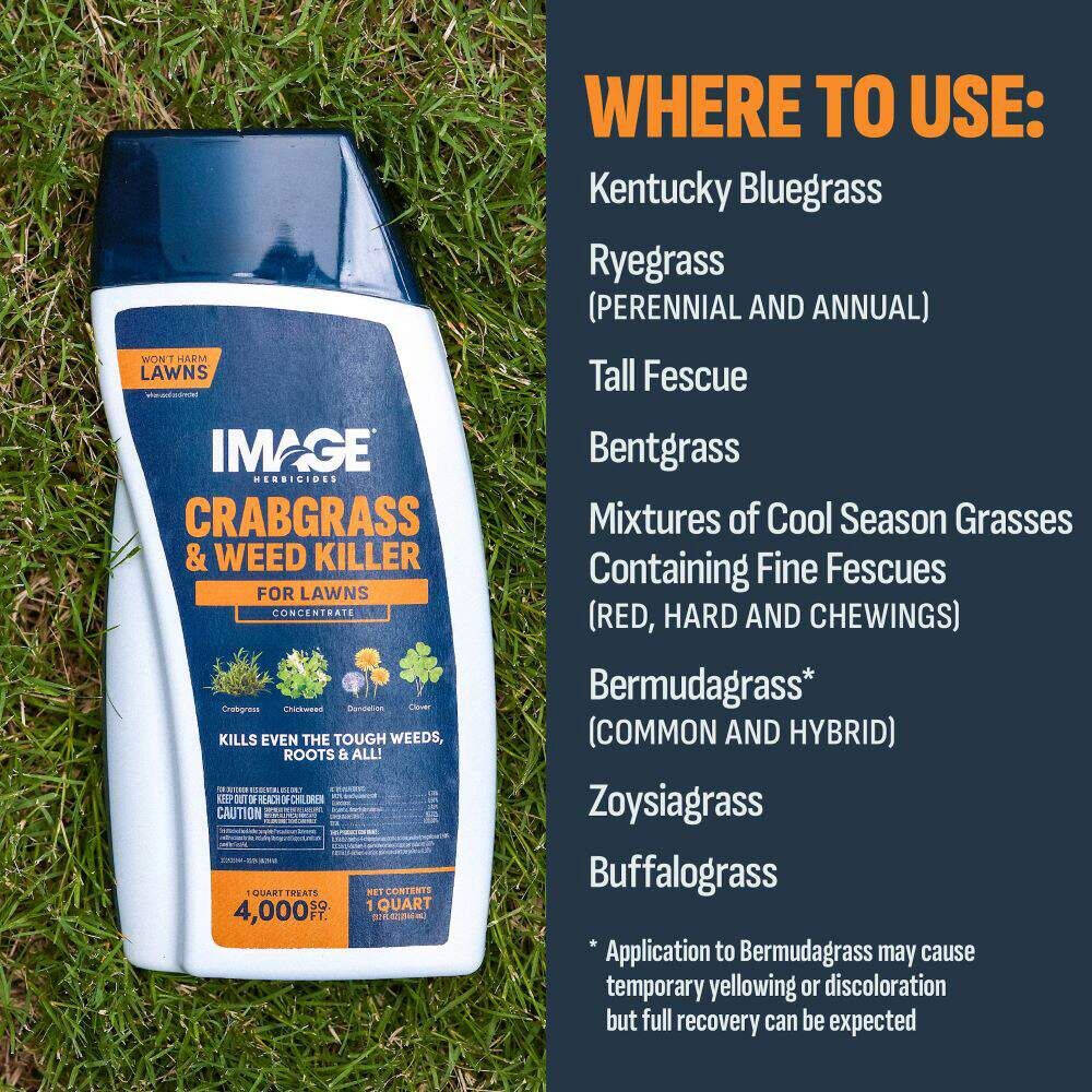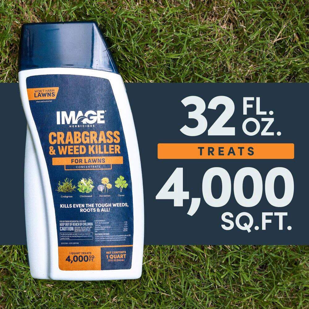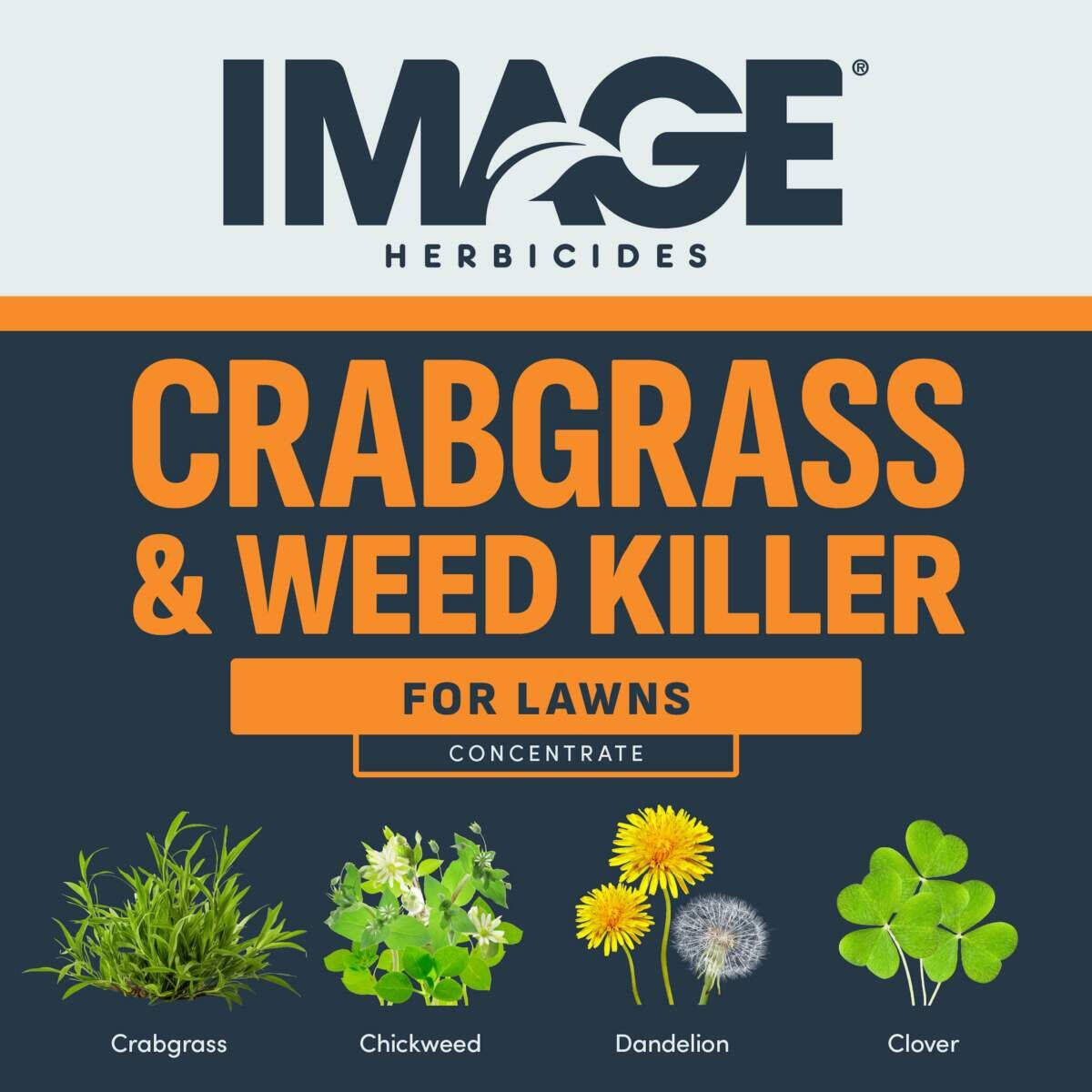 Image® Herbicides Crabgrass & Weed Killer for Lawns Concentrate kills lawn weeds plus Crabgrass in one easy step. This three-in-one product kills 200+ weeds to the root. Use on established lawns to control both Crabgrass & Broadleaf Weeds. This water based formula starts working immediately and won't harm lawns when used as directed.