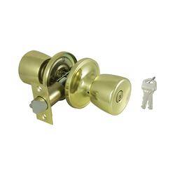 For keyed exterior doors. Both knobs lock or unlock by key outside or turn button inside. All metal components. Solid steel latch assembly. Rust-resistant solid brass keyway for more security. Seamless 1-Piece knob for extra strength. Square spindle for right or left handed installations. Easy installation. Cylinder drilled for construction keying. Door prep 2-1/8 in Crossbore, 1 in Edge Bore, 1 in x 2-1/4 in Latch Face. Door thickness Fits 1-3/8 to 1-3/4 in doors. Cylinder 5-pin, removable, KW1 keyway, one piece solid brass, two nickel-plated, solid brass keys. Strikes of 1 in x 2-1/4 in Bolt 1/2 in throw. Reversible for right or left hand doors. ANSI/BHMA Exceeds Grade 3 Standards. 6-WAY Adjustable latch fits 2-3/8 to 2-3/4 in square corner, radius corner or drive in applications, includes both square and 1/4 in radius corner strikes.