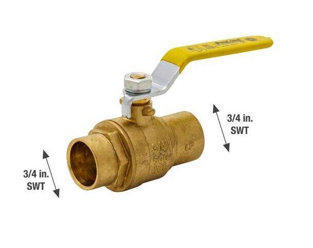 ProLine™ 3/4-Inch Sweat X Sweat, Brass, Copper X Copper, Full Port- ProLine Ball Valves are precisely engineered for outsanding service, long life and reliable performance. These valves offer easy operation, superior flow and inlclude a wide range of water/oil/ gas (WOG) valves, gas valves and water valves constructed from forged brass, CPVC and PVC materials. ProLine Valves meet UPC and ICC plumbing code requirements and are certified to meet NSF 61.