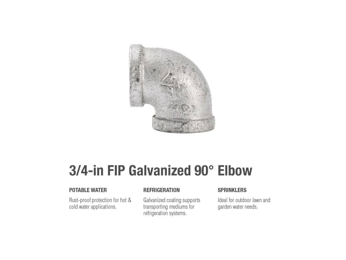 The 90° Elbow allows you to redirect your piping system in a needed direction. This fitting’s galvanization provides a layer of rust-protectant, helping to ensure a long and durable product life. General uses for this product are for transporting potable water, compressed air, drainage or creating your DIY projects.