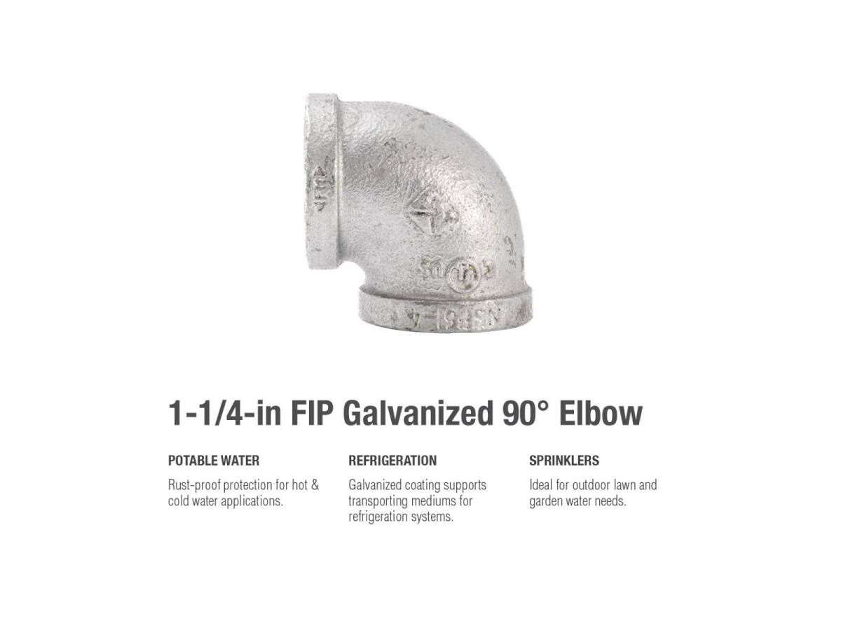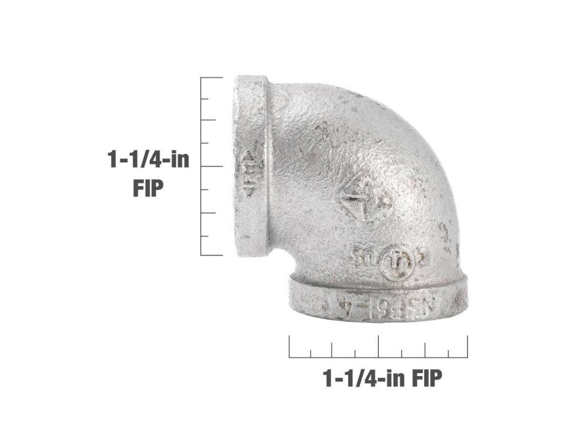 1-1/4 in. FIP x 1-1/4 in. FIP Galvanized Malleable Iron Elbow Fitting, 90° - Rust Resistant, 1-Pack