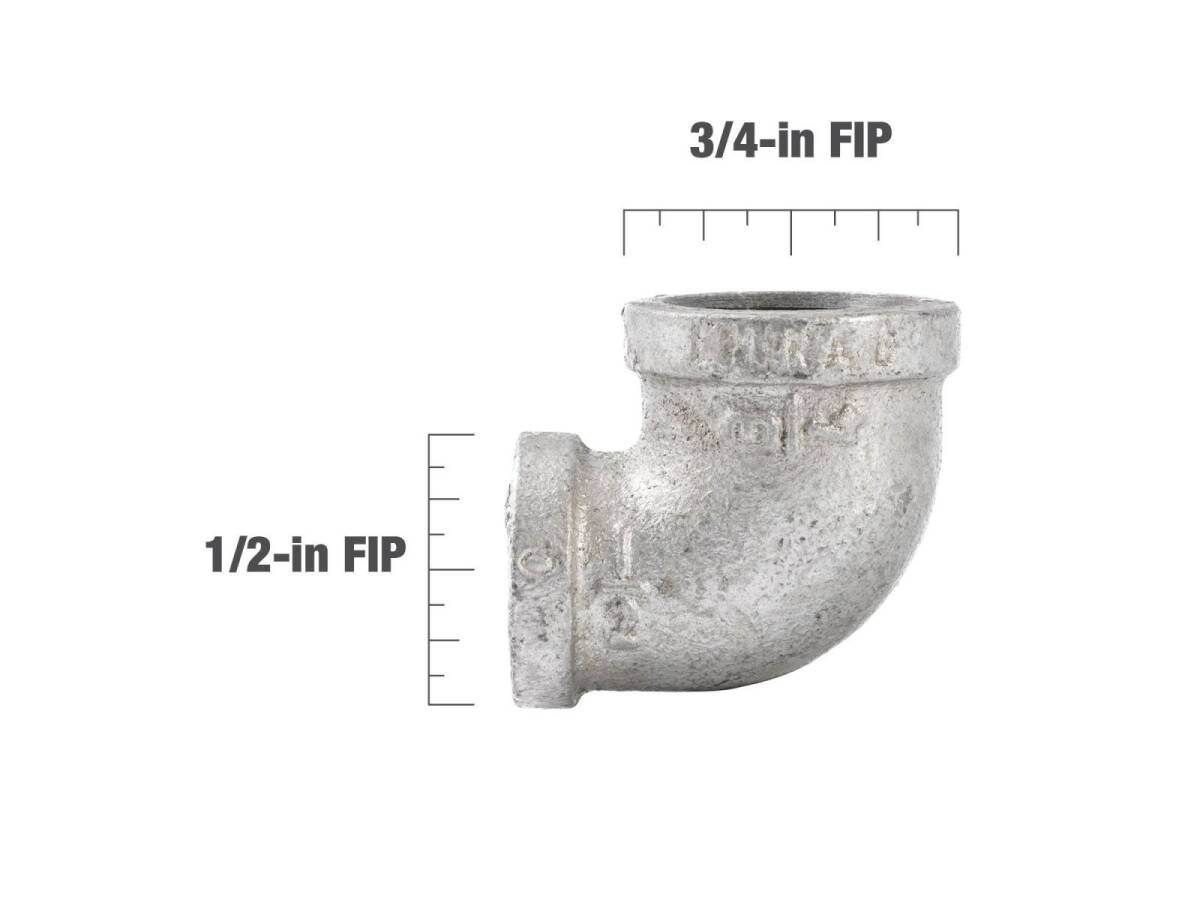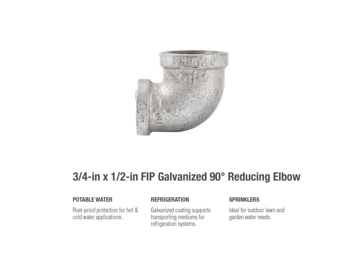 3/4 in. FIP x 1/2 in. FIP Galvanized Malleable Iron Reducing Elbow Fitting, 90° - Rust Resistant, 1-Pack
