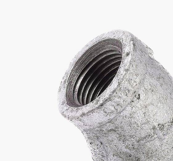 - Galvanized malleable iron construction with zinc coating