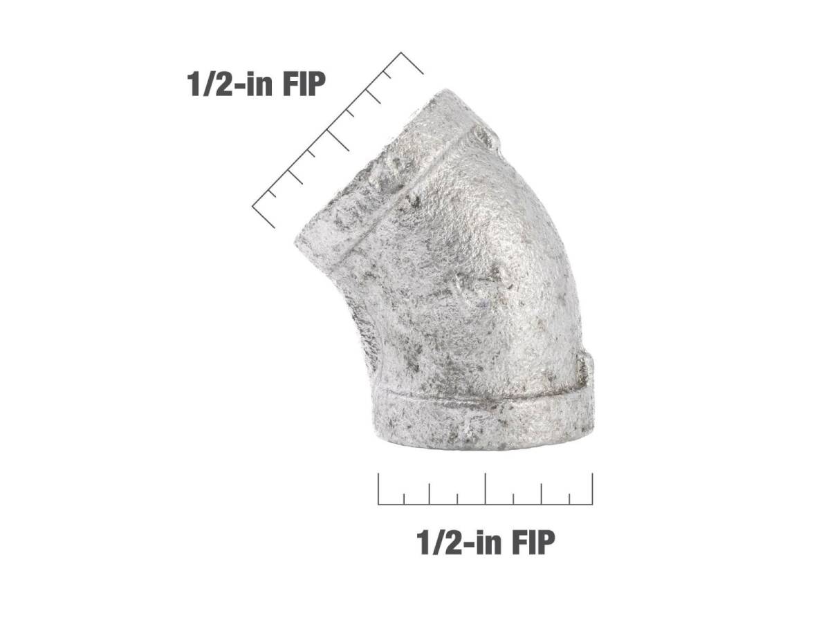 1/2 in. FIP x 1/2 in. FIP Galvanized Malleable Iron Elbow Fitting, 45° - Rust Resistant, 1-Pack