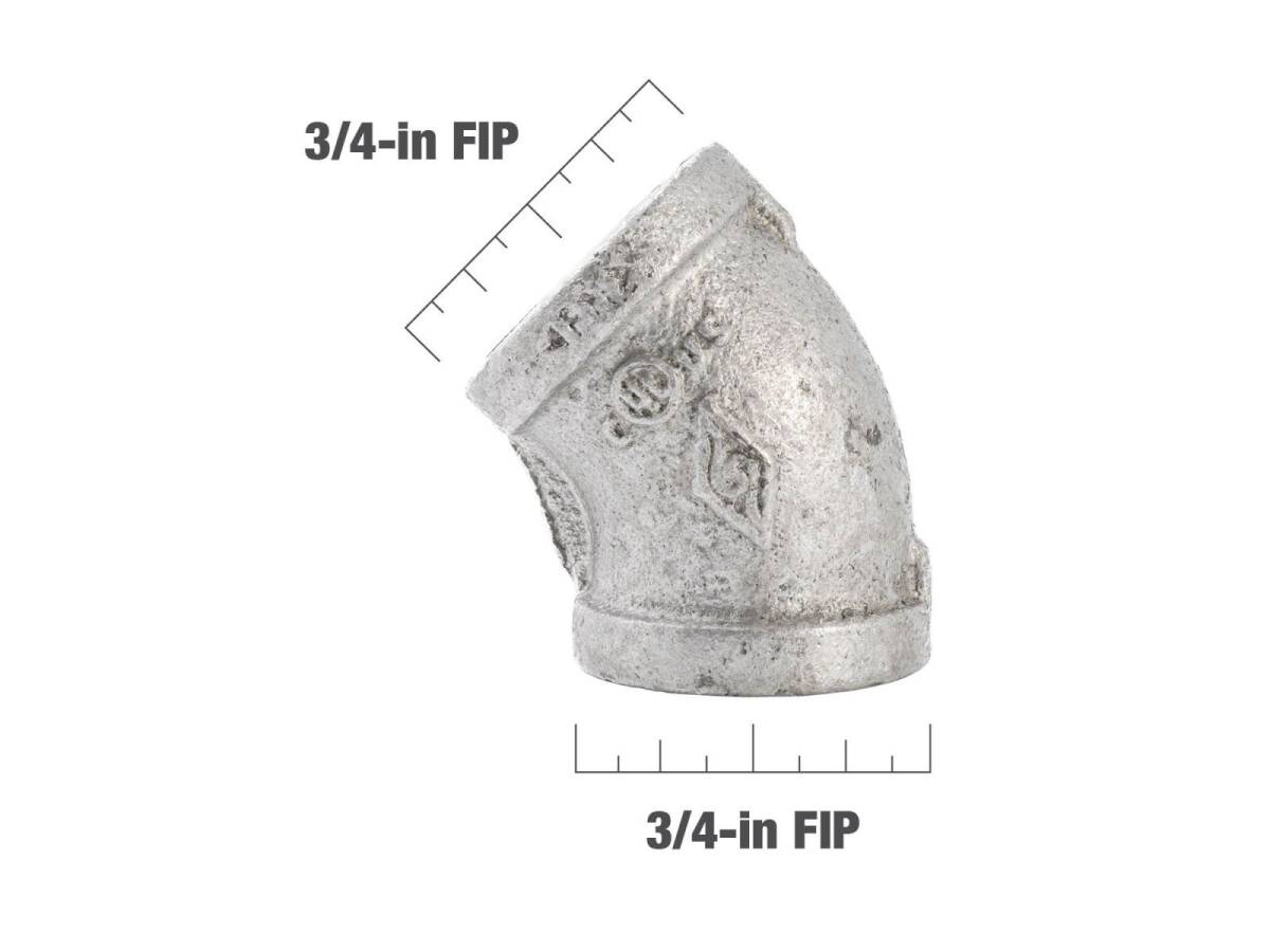 3/4 in. FIP x 3/4 in. FIP Galvanized Malleable Iron Elbow Fitting, 45° - Rust Resistant, 1-Pack
