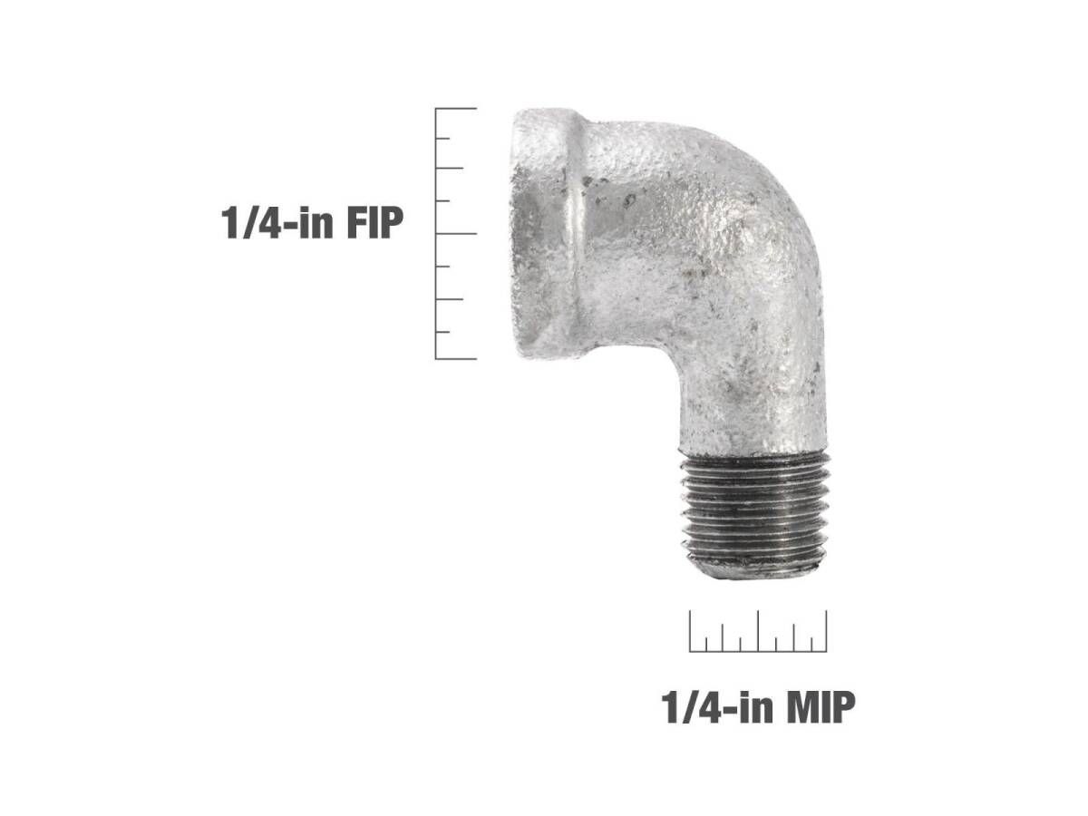 1/4 in. FIP x 1/4 in. MIP Galvanized Malleable Iron Street Elbow Fitting, 90° - Rust Resistant, 1-Pack