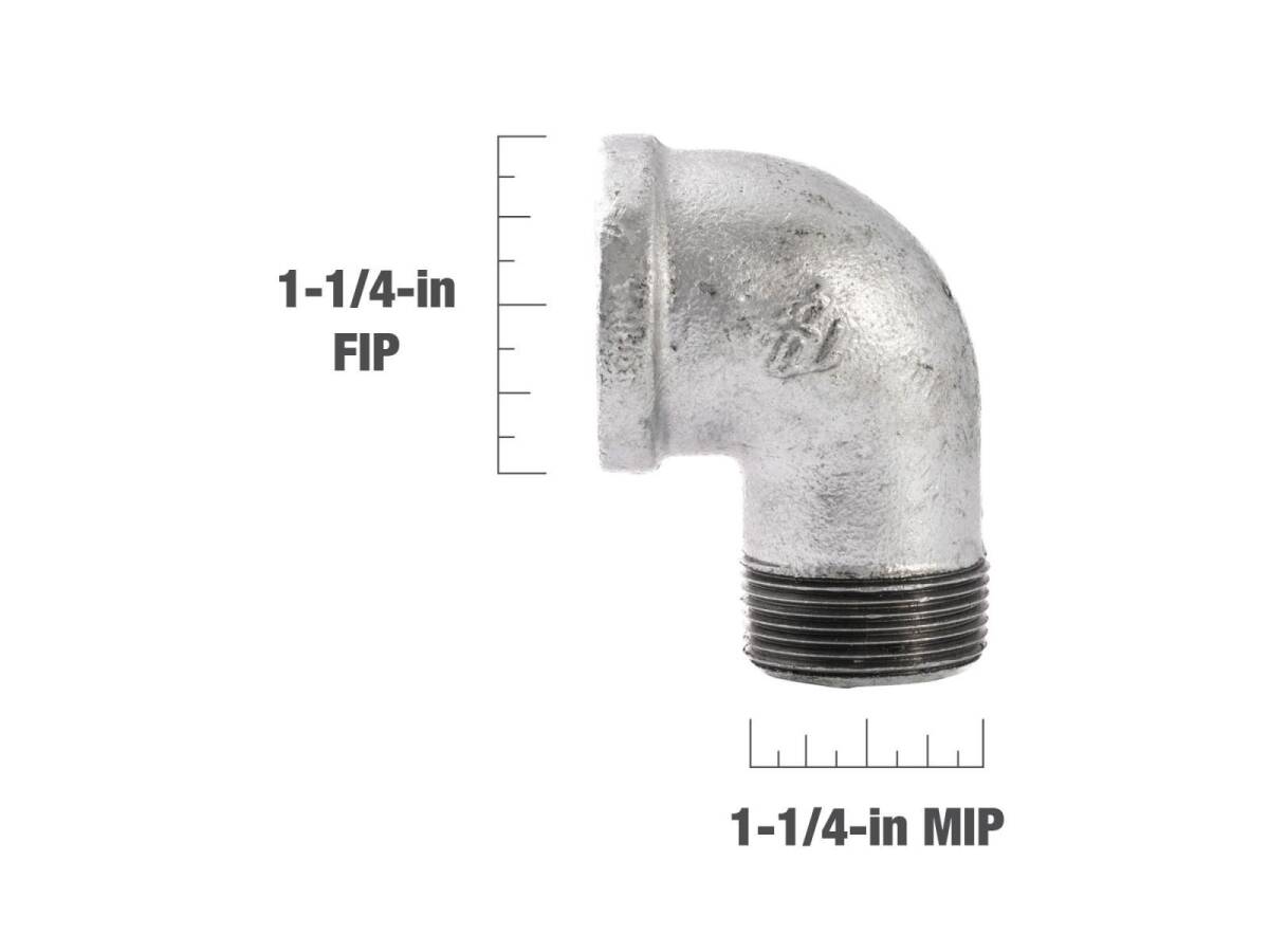 1-1/4 in. FIP x 1-1/4 in. MIP Galvanized Malleable Iron Street Elbow Fitting, 90° - Rust Resistant, 1-Pack