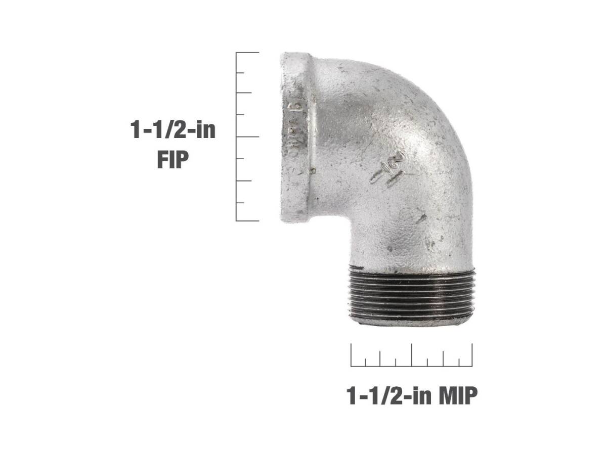 1-1/2 in. FIP x 1-1/2 in. MIP Galvanized Malleable Iron Street Elbow Fitting, 90° - Rust Resistant, 1-Pack