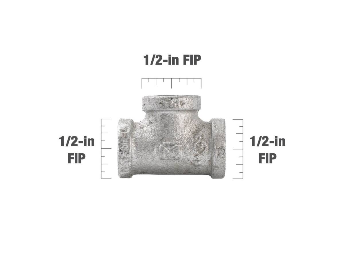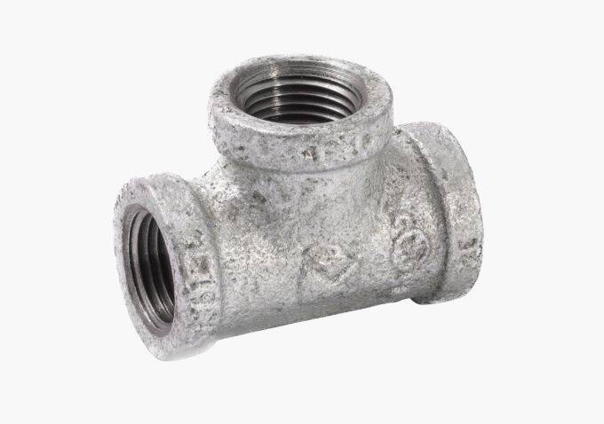 Malleable Iron Galvanized Pipe Tee Fitting, 1/2" x 1/2" x 1/2"