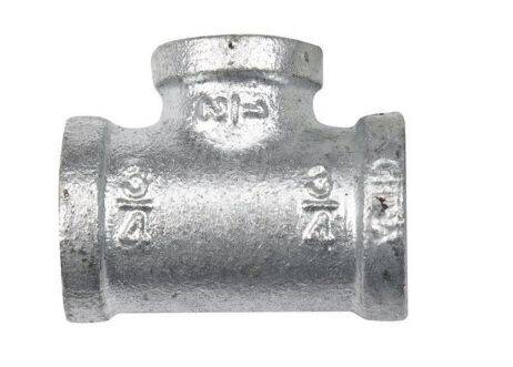 Malleable Iron Galvanized Pipe Reducing Tee Fitting, 3/4" x 3/4" x 1/2"