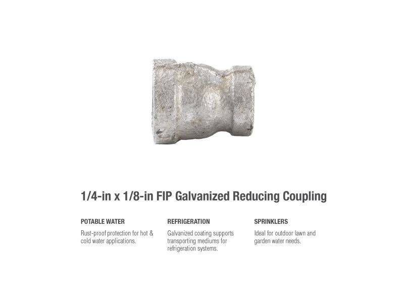 Malleable Iron FIP x FIP Galvanized Pipe Reducing Coupling, 1/4" X 1/8"