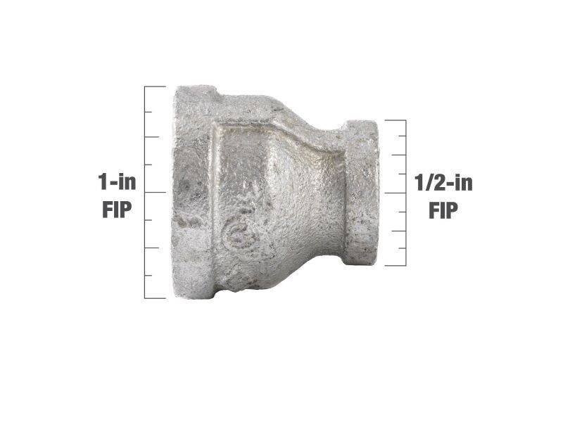 Malleable Iron FIP x FIP Galvanized Pipe Reducing Coupling, 1" x 1/2"