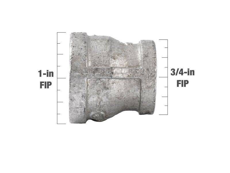 Malleable Iron FIP x FIP Galvanized Pipe Reducing Coupling, 1" x 3/4"