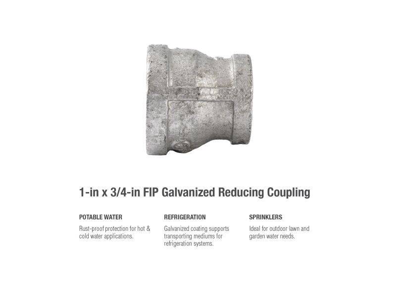 The Reducing Coupling allows you to connect two male-ended pipes of differing diameters. This fitting’s galvanization provides a layer of rust-protectant, helping to ensure a long and durable product life. General uses for this product are for transporting potable water, compressed air, drainage or creating your own DIY projects.