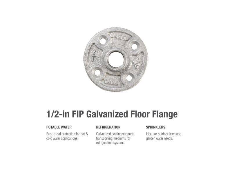 Flanges allow for a secure piping connection to either the floor or wall. This fitting’s galvanization provides a layer of rust-protectant, helping to ensure a long and durable product life. General uses for this product are for transporting potable water, compressed air, drainage or creating your own DIY projects.