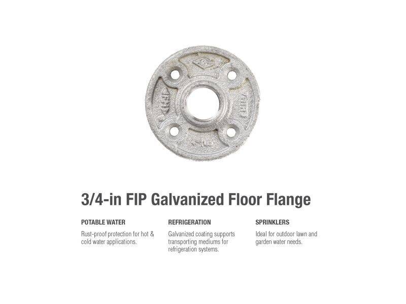 Flanges allow for a secure piping connection to either the floor or wall. This fitting’s galvanization provides a layer of rust-protectant, helping to ensure a long and durable product life. General uses for this product are for transporting potable water, compressed air, drainage or creating your own DIY projects.