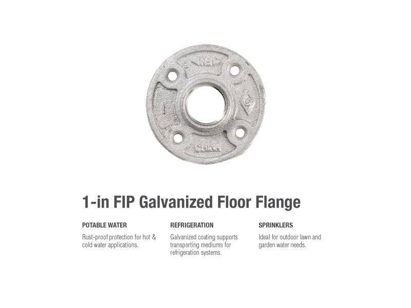 Flanges allow for a secure piping connection to either the floor or wall. This fitting’s galvanization provides a layer of rust-protectant, helping to ensure a long and durable product life. General uses for this product are for transporting potable water, compressed air, drainage or creating your own DIY projects.