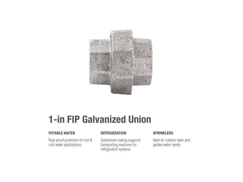 Unions do exactly what they are named to do, join two pipes to form a secure union. This fitting’s galvanization provides a layer of rust-protectant, helping to ensure a long and durable product life. General uses for this product are for transporting potable water, compressed air, drainage or creating your own DIY projects.