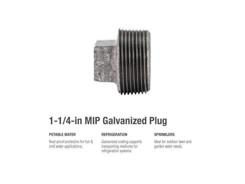 Malleable Iron Galvanized Pipe Plug, 1-1/4"