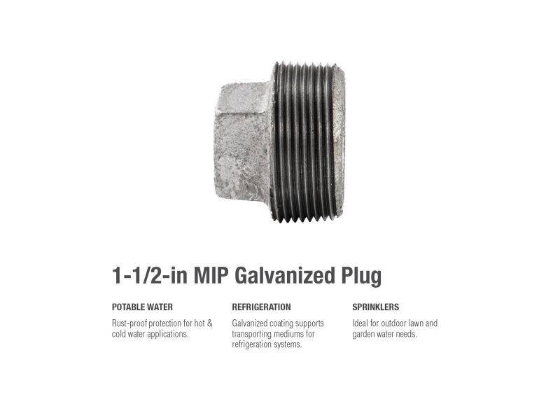 Malleable Iron Galvanized Pipe Plug, 1-1/2"