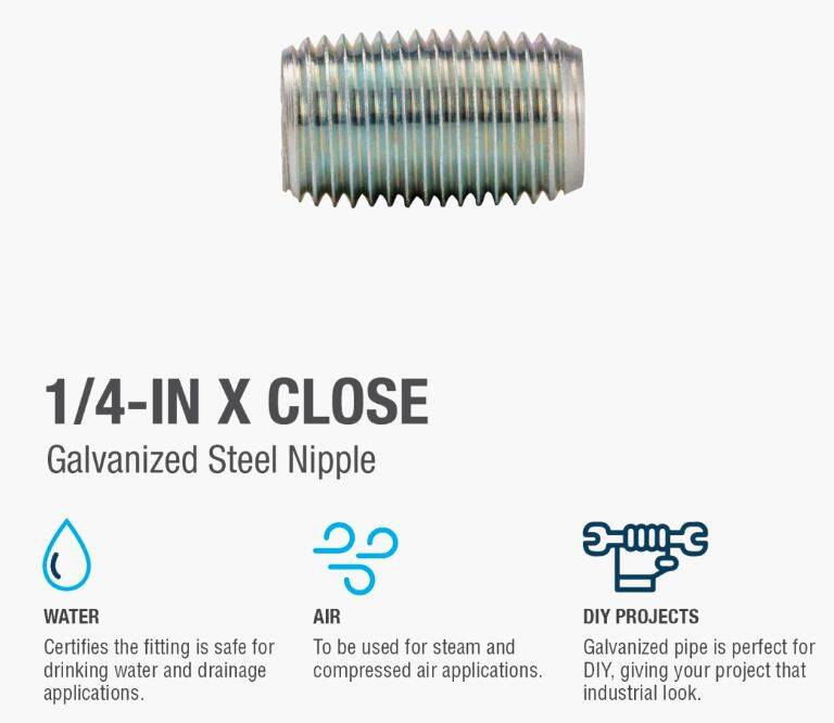 Galvanized nipples and pipe offer a trusted and easy method of transporting plumbing mediums. General uses for this product are for transporting potable water, compressed air, drainage or to create your own DIY projects. This class of pipe is designed for use with other galvanized fittings.