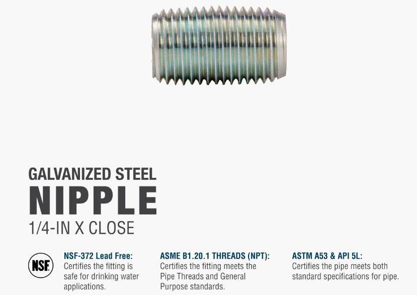 Close x 1/4 in. Steel Galvanized Pipe Nipple - Threaded, Schedule 40, 1-Pack
