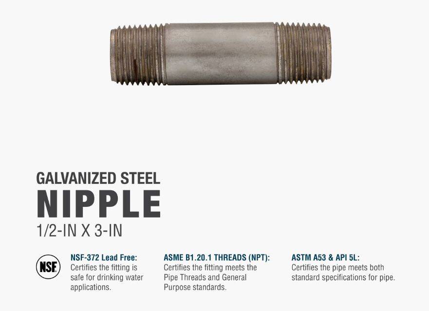 Galvanized nipples and pipe offer a trusted and easy method of transporting plumbing mediums. General uses for this product are for transporting potable water, compressed air, drainage or to create your own DIY projects. This class of pipe is designed for use with other galvanized fittings.