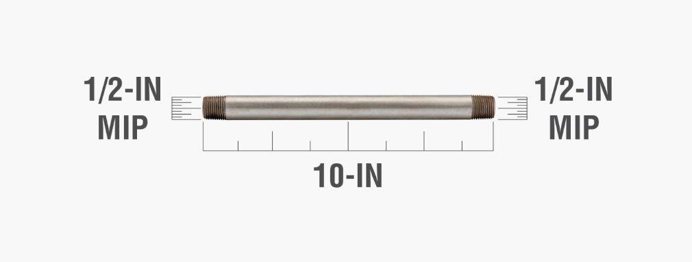 10 in. x 1/2 in. Steel Galvanized Pipe Nipple - Threaded, Schedule 40, 1-Pack