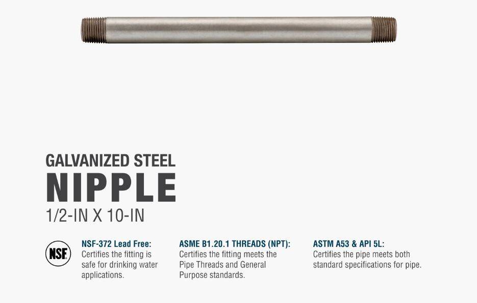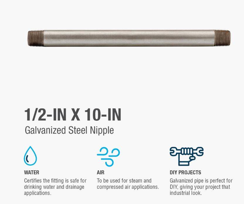 Galvanized nipples and pipe offer a trusted and easy method of transporting plumbing mediums. General uses for this product are for transporting potable water, compressed air, drainage or to create your own DIY projects. This class of pipe is designed for use with other galvanized fittings.