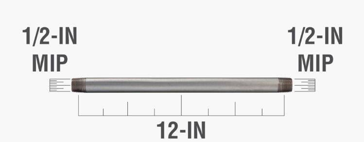 12 in. x 1/2 in. Steel Galvanized Pipe Nipple - Threaded, Schedule 40, 1-Pack