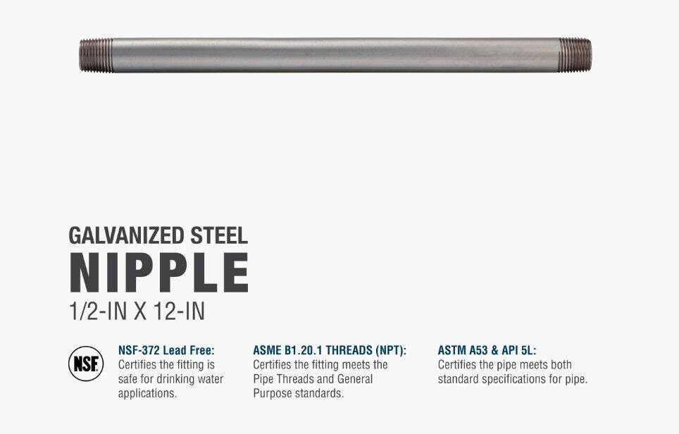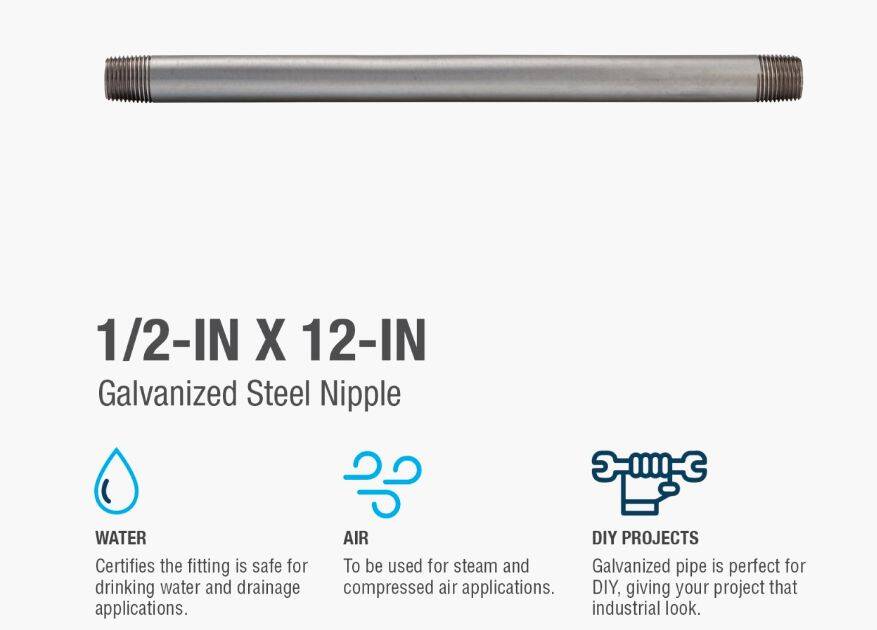 Galvanized nipples and pipe offer a trusted and easy method of transporting plumbing mediums. General uses for this product are for transporting potable water, compressed air, drainage or to create your own DIY projects. This class of pipe is designed for use with other galvanized fittings.